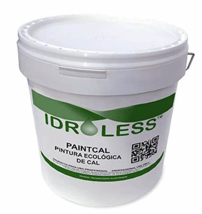 La pintura impermeabilizante Paintcal de Idroless es un producto ecológico compuesto de cal y colas vegetales. Gracias a su composición a base de cal, además, posee propiedades desinfectantes, fungicidas y